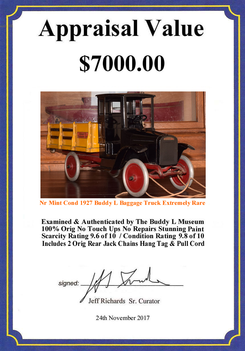1930's Buddy L Pressed Steel Jr Baggage (Dray) Truck Original. Opening